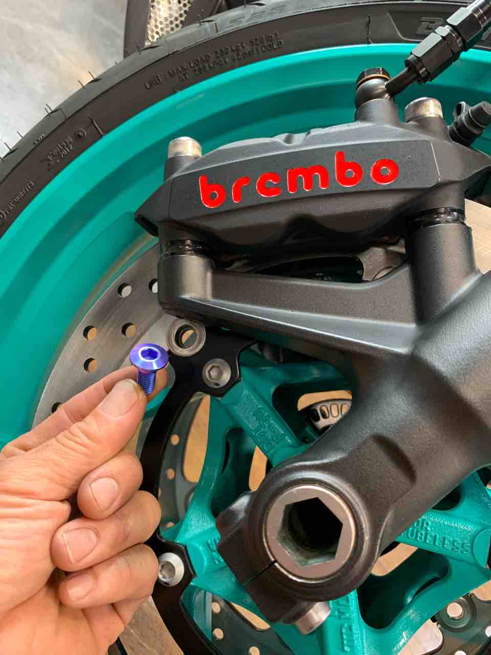 新型SPモデルはブレンボキャリパー採用で旧モデルと取付ピッチが異なるのですが、STDモデルのキャリパーは従来どおり。